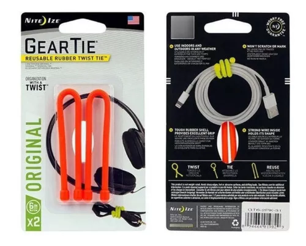 AMARRA DE GOMA GEAR TIE,15,2CM,2PACK,NARANJO Descripción Con un interior totalmente alambre flexible y colorido, durable, suave exterior de goma, el Gear Tie es el organizador perfecto todo alrededor. * Material: Caucho