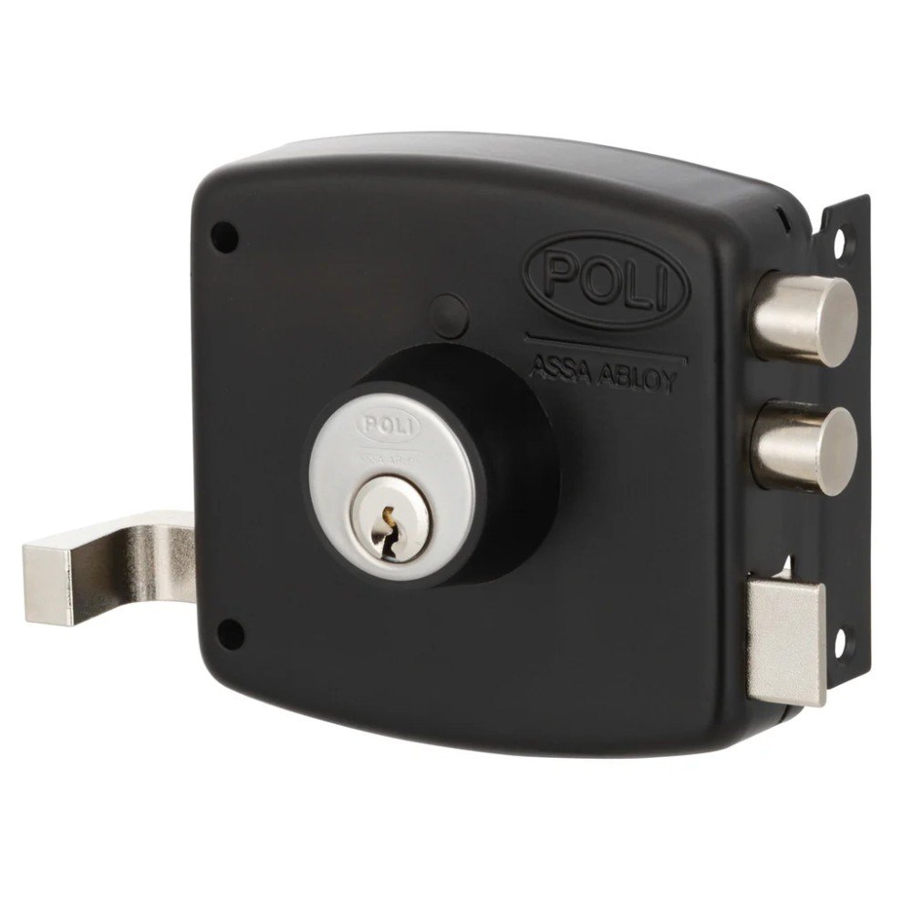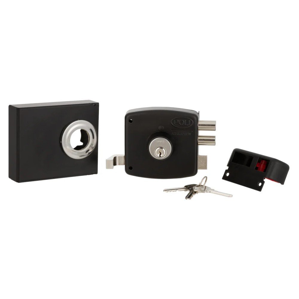 CERRADURA BANDERA CI 30 C/CAJA POLI Cerrojo de 2 pitones Cilindro incorporado 30mm Bandera indica puerta ABIERTA Doble vuelta de llave Incluye 3 llaves de bronce niqueladas Picaporte reversible, sirve para puerta izquierda y derecha Incluye caja para soldar a reja Backset 50mm Terminación: Negro Linea: sobreponer Función: Reja Terminación: Negra Empaque: Blister