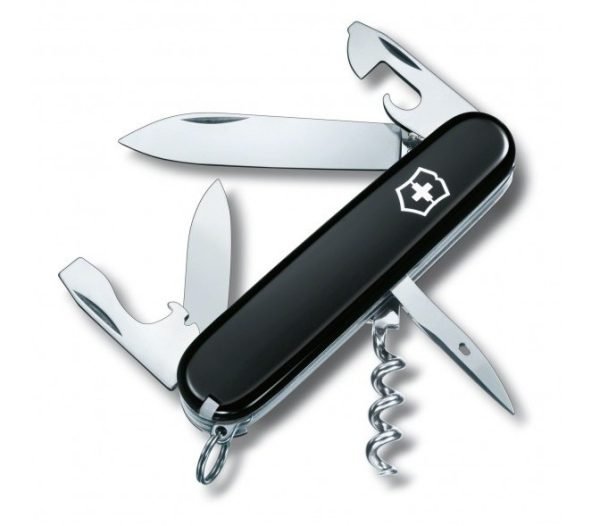 Caracteristicas clave – La herramienta ideal para abrir latas o pelar cables en su vida diaria – Navaja de bolsillo hecha en Suiza con 12 funciones – Incluye una sacacorchos y un abrelatas con un destornillador pequeno Navaja de bolsillo mediana con abrelatas Cuando escuche hablar de la Navaja Suiza, es probable que venga a su mente el recuerdo de la legendaria navaja para oficiales. Esa leyenda sigue viva con la navaja de bolsillo Spartan. Esta es la navaja de bolsillo con la que todo comenzo. La que ayudo a gente de todo el mundo a realizar diferentes tipos de trabajos. Y, sin importar el lugar a donde sus aventuras lo lleven, la Spartan siempre esta lista. Herramientas hoja grande hoja pequena abrelatas destornillador 3 mm destapador destornillador 6 mm pela cables punzon escariador sacacorchos palillo de dientes pinzas anilla Dimensiones Altura – 14.5 mm Longitud – 91 mm Peso – 59 g Detalles Material de la cacha – ABS/Cellidor Hoja bloqueable – No Hoja para una mano – No
