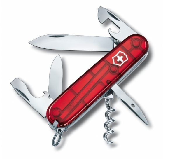 Caracteristicas clave – La herramienta ideal para abrir latas o pelar cables en su vida diaria – Navaja de bolsillo hecha en Suiza con 12 funciones – Incluye una sacacorchos y un abrelatas con un destornillador pequeno Navaja de bolsillo mediana con abrelatas Cuando escuche hablar de la Navaja Suiza, es probable que venga a su mente el recuerdo de la legendaria navaja para oficiales. Esa leyenda sigue viva con la navaja de bolsillo Spartan. Esta es la navaja de bolsillo con la que todo comenzo. La que ayudo a gente de todo el mundo a realizar diferentes tipos de trabajos. Y, sin importar el lugar a donde sus aventuras lo lleven, la Spartan siempre esta lista. Herramientas hoja grande hoja pequena abrelatas destornillador 3 mm destapador destornillador 6 mm pela cables punzon escariador sacacorchos palillo de dientes pinzas anilla Dimensiones Altura – 14.5 mm Longitud – 91 mm Peso – 59 g Detalles Material de la cacha – ABS/Cellidor Hoja bloqueable – No Hoja para una mano – No