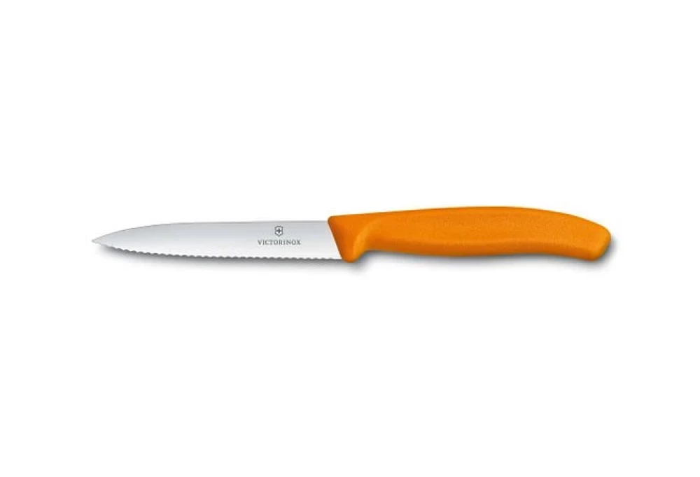 CUCHILLO VERDURA, DENT, PTA REDONDA, NYLON NARANJO, 11CM