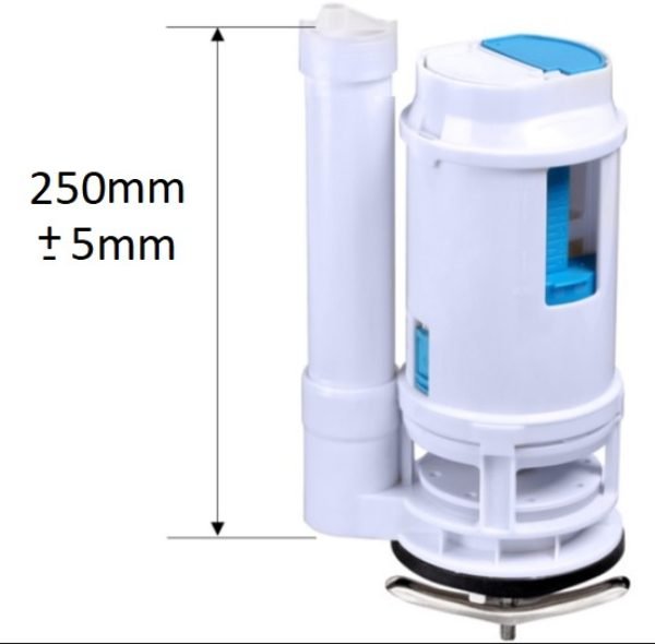 DESCARGA WC 2 ETAPAS PARA ‘ONE PIECE’ TAUMMAlto: 250 mm; se adapta a hoyos de 65 a 77 mm (Diám.Interior). Volumen Descarga Ajustable para cada función por separado *Las imágenes exhibidas son referenciales, y no constituyen necesariamente una representación exacta de la realidad ni definen el producto final* Se recomienda al cliente la lectura manual del usuario y proceder con los cuidados básicos de mantenimiento preventivo.