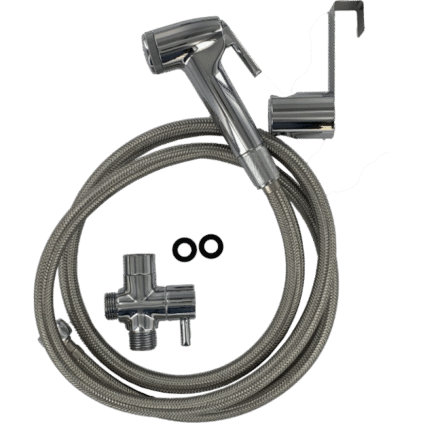 • El gancho del soporte del maneral permite colgarlo del estanque del wc, o retirando el gancho el soporte se puede montar al muro con los tornillos y tarugos provistos.
