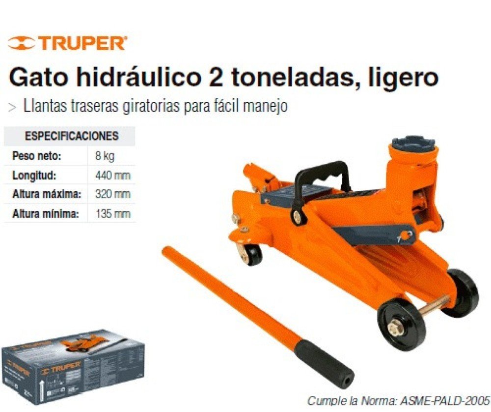 GATA HIDRAULICA CAIMAN 2 TONELADAS CAJA CARTON 14944 TRUPER Características