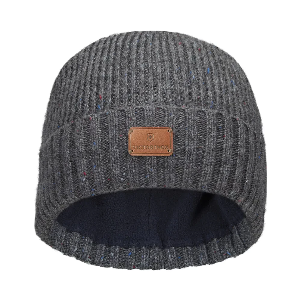 GORRO DE LANA,DELUXE,GRIS Esta versátil pieza unisex para la cabeza es ideal tanto para realizar senderismo en altura, como para usar con audífonos y ropa deportiva en el gimnasio. Tejido en lana supersuave y con patrón acanalado, es ligero, cálido y abrigado a la vez, y cabe en el espacio más pequeño de sus maletas de mano o mochila. El logotipo* de Victorinox en cuero color habano le agrega un detalle de diseño llamativo. Combínelo con la bufanda en juego y recibirá elogios por su estilo.
