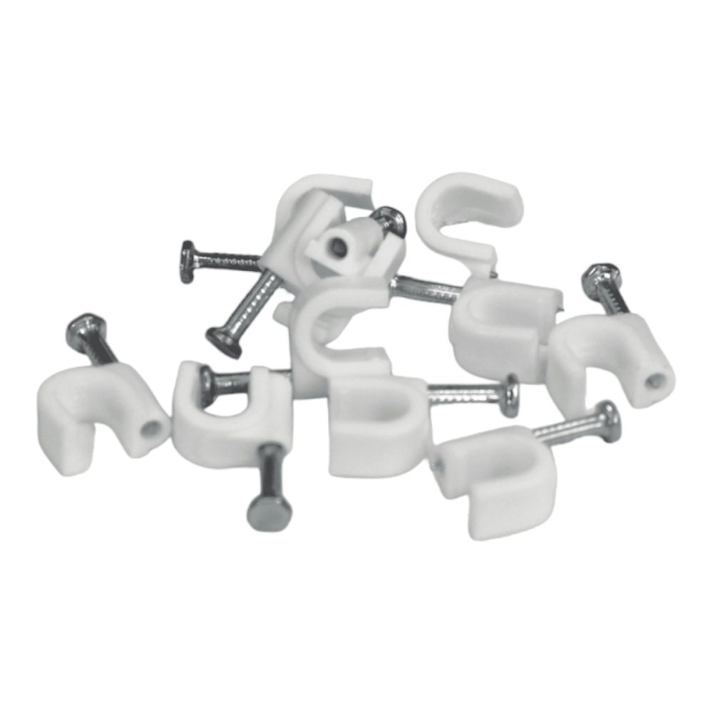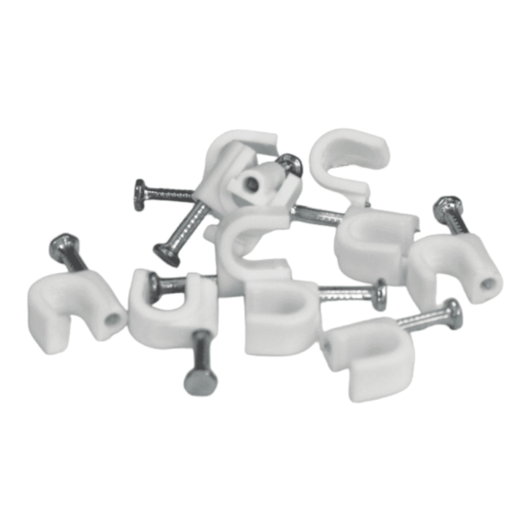 rampa blanca Con Clavo De Acero , para cordón de hasta 7mm de diámetro. Bolsa de 100 unidades