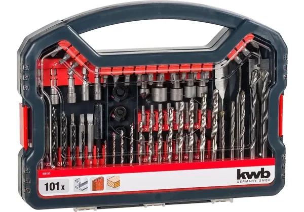 Maletín de plástico estable, con un cierre seguro y asa integrada. El complemento óptimo para destornilladores, taladros recargables y taladros con cable. Amplio surtido de brocas para madera, metal y piedra, vasos hexagonales e insertables,además de puntas en los tamaños habituales. Todas las puntas y todos los portapuntas son de acero al cromo vanadio de alta calidad. Incluye: 15 brocas HSS para metal. (1,5, 2, 2,5, 3, 3,2, 3,5, 4, 4,5, 4,8, 5, 5,5, 6, 6,5, 7, 8 mm). 6 brocas HM/TCT para piedra. (3, 4, 5, 6, 8, 10 mm). 6 brocas CV para madera (3, 4, 5, 6, 8, 10 mm). 48 x 25 mm 1/4″ C 6.3 bits: Ranura: 4, 5, 6 mm, Philips: PH0, 2 PH1, 4 PH2, 2 PH3, Pozidriv: 2 PZ1, 4 PZ2, 2 PZ3, Torx: 2 T10, 2 T15, 2 T20, 2 T25, 2 T27, 2 T30, hexagonal: 2 x 2, 2 x 2,5, 2 x 3, 2 x 4, 2 x 5, 2 x 6 mm, cuadrado: 0, 1, 2, 3. 7 x 50 mm 1/4″ E 6.3 bits: Ranura: 4, 5, 6 mm. Philips: PH2, PH3, Pozidriv: PZ2, PZ3. 9 llaves de vaso con 1/4″ 4, 5, 5,5, 6, 7, 8, 9, 10, 12 mm. 1 x 1/4″ portapuntas (magnético) 1 llave hexagonal, 3 brocas planas con alojamiento E6.3, 16, 18, 22 mm. 1 avellanador con 1/4″ E 6.3 de 12 mm.