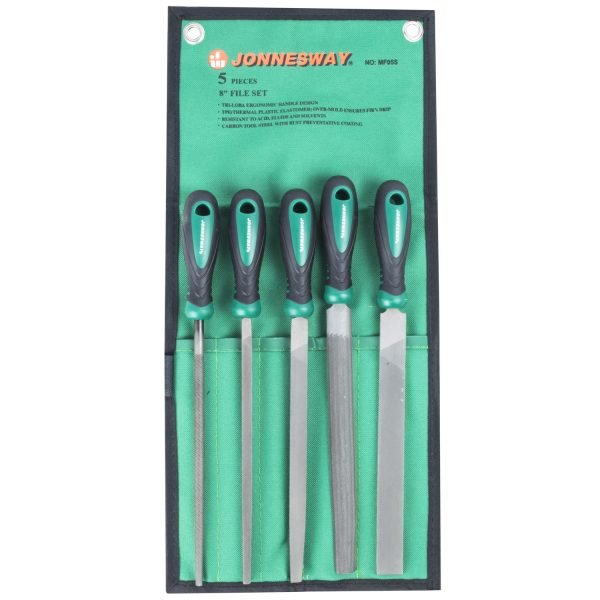 JGO LIMAS 5PZAS 8′ MF05S JONNESWAY Juego de limas, 5 unidades 8′, largo. Contenido: 1 Lima triangular. 1 Lima rectangular. 1 Lima circular. 1 Lima semi circular. 1 Lima plana. Incluye: Funda. MODELOMF05S DIMENSIONES360 x 100 x 60mm PESO APROX.1 Kg.