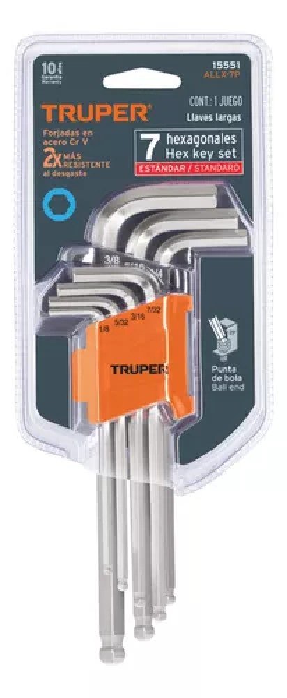 marca truper Fabricadas en acero al cromo vanadio 2X más resistentes al desgaste que las de acero al carbono Acabado satinado 3X más resistente a la corrosión Llaves largas de doble posición, que permiten mayor torque y alcanzar lugares de difícil acceso Organizador plástico abatible