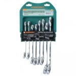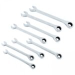 Juego profesional de 8 llaves combinadas con sistema de chicharra de alta precisión. Ideal para mecánica, mantenimiento industrial y trabajos donde se requiere rapidez y comodidad.