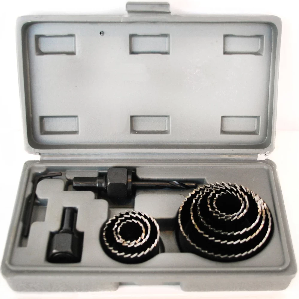 Este kit de sierra de agujero no se puede utilizar para materiales duros, como MDF, madera dura y metal. Es ideal para materiales blandos, como tableros de plástico, tableros finos de pvc, tableros de yeso, corcho, y es ideal para proyectos de bricolaje, así como para el mantenimiento y la reparación del hogar Adecuado para cortar madera, placa de aluminio, placa de metal delgada, plástico, tablero de yeso, etc. El kit de herramientas de perforación para Sierra de agujero de acero al carbono puede ayudarte a perforar agujeros de diferentes diámetros de forma rápida y efectiva. Material: acero al carbono Especificaciones: Abridor de agujeros de 11 piezas: 19mm, 22mm, 29mm, 32mm, 38mm, 44mm, 51mm, 64mm. Lista del paquete: 11 piezas: Abridor de agujeros de acero al carbono * 8 Eje * 2 Llave hexagonal * 1