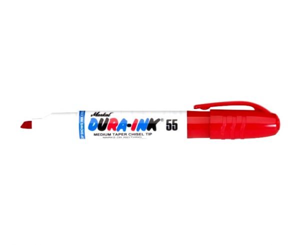 LAPIZ MARCADOR ROJO DURA-INK Diseño ergonómico para uso prolongado Punta de cincel versátil para 1/16″ y 3/16″ marcas Largo Kilometraje, económico Tinta formulado para uso industrial. Resistentes a las manchas, resistente al agua, secado rápido.La tinta de uso industrial es resistente al agua y a los borrones y ofrece marcas duraderas. La punta extra-resistente no se abre ni se deteriora. El tubo plástico duradero ofrece mayor protección y evita roturas en los lugares de trabajo o en la planta. El tapón con clip incorporado se coloca cómodamente en el extremo del marcador y evita que el marcador ruede y se caiga de las superficies de trabajo. La tinta sin xileno elimina las inquietudes relacionadas con la salud de los usuarios. Tamaño de marcaje: 1,5 mm (1/16 in)*Las imágenes exhibidas son referenciales, y no constituyen necesariamente una representación exacta de la realidad ni definen el producto final*
