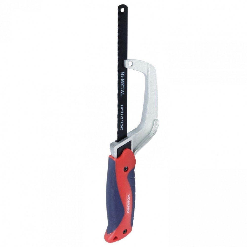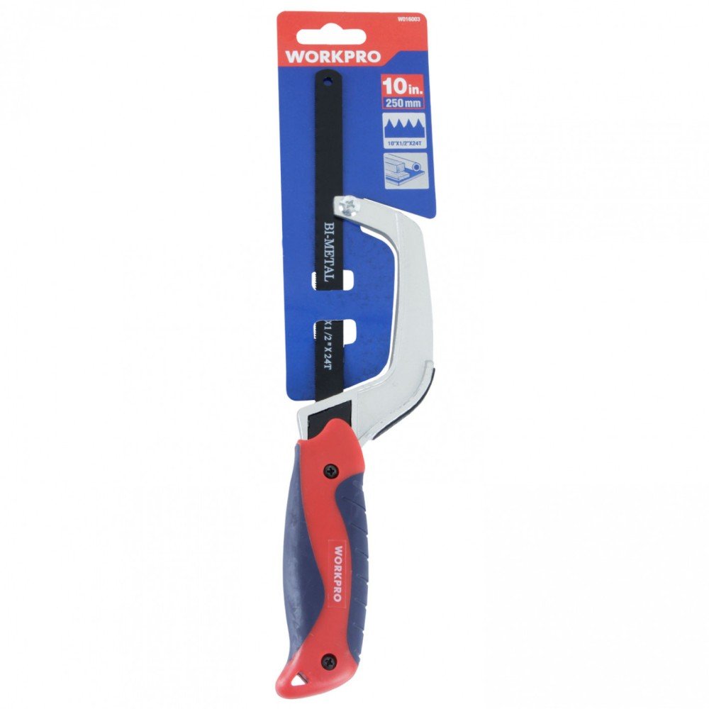 El marco de sierra mini Workpro de 10 pulgadas (250 mm) es una herramienta compacta y práctica, ideal para realizar cortes en lugares de difícil acceso. Su estructura de aleación de aluminio proporciona resistencia y ligereza, mientras que su mango ergonómico recubierto en goma entrega mayor comodidad y control durante el trabajo.