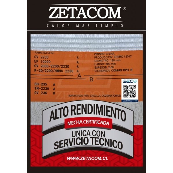 MECHA ESTUFA KERO HEAT CV-2000/2230 ZCOZMAR – (47027) Categoria: Kero HeatSengoku Sindelen Código: CV2230 Descripción: Mecha fabricada en Corea con medidas y especificaciones técnicas exactas, de acuerdo al plano de construcción de la mecha con pruebas de funcionamiento mecánico y de combustión. Construida en su zona superior con fibra de vidrio y cuatro costuras de hilo de vidrio en la zona de combustión. En la zona inferior está compuesta de algodón y un refuerzo de tela termo fusionada de 55mm. Costura de cierre con hilo de vidrio en zigzag de tres pasos. Especificaciones técnicas: Diámetro: 120mm Espesor: 2.60mm Alto: 195mm Utilizable en estufas: Kero Heat CV-2230, CV2000, 2200, 2230, Heat Mate K-20, 220, HMHC-2230, Sumo Heat, Mega Heat, Sindelen EP-10000 CV-2230, Sengoku CV-2230, Tenki TN-2230, Giga Heat. CV-23K Sengoku CV-2230, Tenky 2235, Sumo Heat SH-235, OS-03, Sindelen EP-10000, Kero Heat CV-2230, CV-23K, 23 K Dark, Heat Mate HMHC 2230