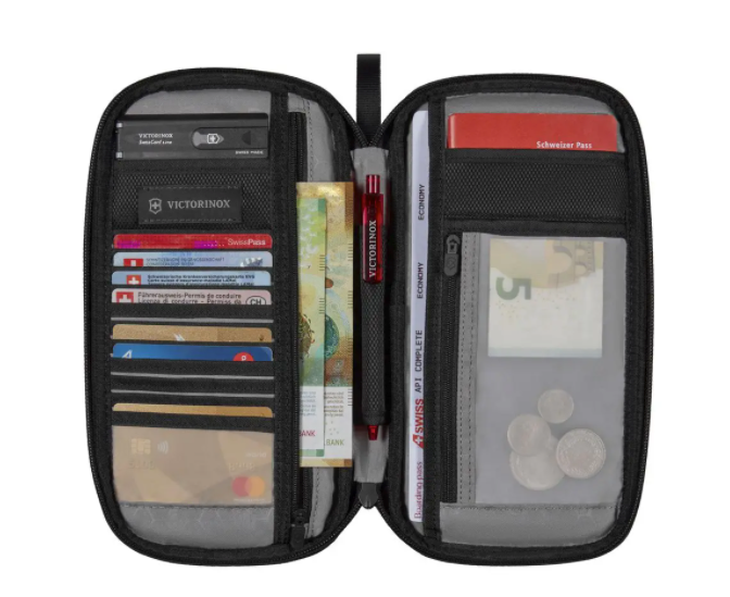 PORTA DOCUMENTOS / PASAPORTES RFID 13 X 26 CM VICTORINOX Características clave Almacena y organiza, pasaportes y dinero Ranuras exclusivas para tarjetas La protección RFID protege los datos personales N° de artículo610597 Tamaño3 x 13 x 26 cm Peso0.2 kg Ya sea que viaje solo, o con su familia o amigos, no querrá salir de su casa sin el organizador de viaje, que presenta una estructura resistente y una amplia capacidad. Detrás del cierre confiable y seguro, encontrará espacio para guardar pasaportes, identificaciones, y mucho más, todo en un organizador fácil de transportar. En sus marcas. ¡Listo! Ahora todo junto.