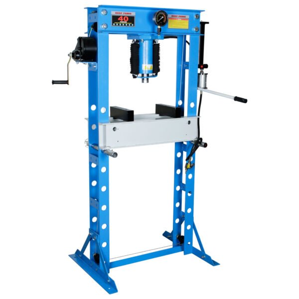 PRENSA DE TALLER HIDRONEUMÁTICA, DISEÑO DE STAND. ACCIONAMIENTO: HIDRONEUMÁTICO, QUE PERMITE TRABAJAR CON MENOR ESFUERZO. EQUIPADO CON UN MANÓMETRO. EL CILINDRO DE TRABAJO SE PUEDE DESLIZAR HACIA LA IZQUIERDA Y HACIA LA DERECHA EN EL MARCO DE ARRIBA. MODELO HJ0806CE CAPACIDAD 40 TONELADAS LONGITUD DE CARRERA 180 MM RANGO DE TRABAJO 0-948 MM DISTANCIA ENTRE PATAS 658 MM ANCHO DE COLUMNA 180 MM PRESIÓN DE AIRE 0,75-0,85 MPA ANCHO 938 MM PROFUNDIDAD 800 MM ALTURA 1907 MILÍMETROS PESO 235 KG