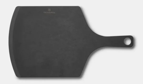 TABLA PIZZA C/MANGO,S,NEGRA Tabla práctica para servir y cortar Disfruta cada día más de las tareas culinarias con la elegante Pala para pizza, con biselado y mango prácticos. Confeccionada con material de compuesto de papel, esta tabla de corte elegante y delgada es también superduradera. Con una superficie que no daña la hoja y una resistencia al calor de hasta 175° C, es ideal para preparar y servir pizza como un verdadero profesional. Dimensiones Altura: 5 mm Longitud: 432 mm Ancho: 254 mm Peso: 467 g