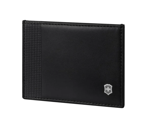 TARJETERO,SLIM,ALTIUS ALOX,NEGRO,CUERO DESCRIPCIÓN Con funcionalidad superior enfocada en los detalles, Altius Alox Slim Card Case es para citadinos desenvueltos con metas definidas. Elegante y compacta con ranura para tarjeta de crédito y una ranura lateral adicional, también es pionera en tecnología. Un recubrimiento protector RFID integrado resguarda sus datos al 100% mientras viaja. Fabricada con el cuero más fino, con un contorno grabado de acero Alox y detalles de diseño en rojo Victorinox, es estéticamente perfecta y a prueba de rayaduras. ESPECIFICACIONES La solución súper delgada con ranuras para tarjetas y lateral. El recubrimiento protector RFID resguarda la seguridad de todos los datos de tu tarjeta de crédito. Elaborada de cuero curtido vegetal suave al tacto Peso (gr): 20 Alto (cm): 10 Ancho (cm): 1 Largo (cm): 9