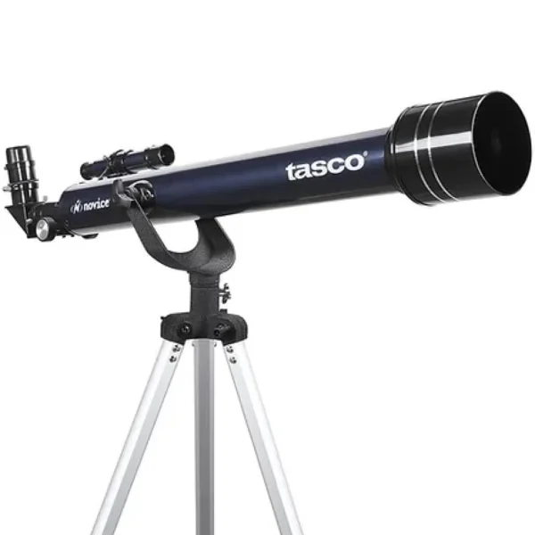 TELESC,TASCO NOVICE 60X700MM,REFRACTOR 402XMAG Especificaciones Especificaciones: Refractor de 402x 60 mm Monte: Altazimuth Buscador: 6×24 mm Relación focal: F / 13 Oculares: (1.25 «) H25mm (28 aumentos) 12,5 mm (56 aumentos) SR4mm (175x) SR4mm (175x) Trípode: Aluminio Peso (libras / kg): 10 / 4.5 Accesorios: Filtro de Luna Diagonal 2x Lente Barlow Modelo: 30060402